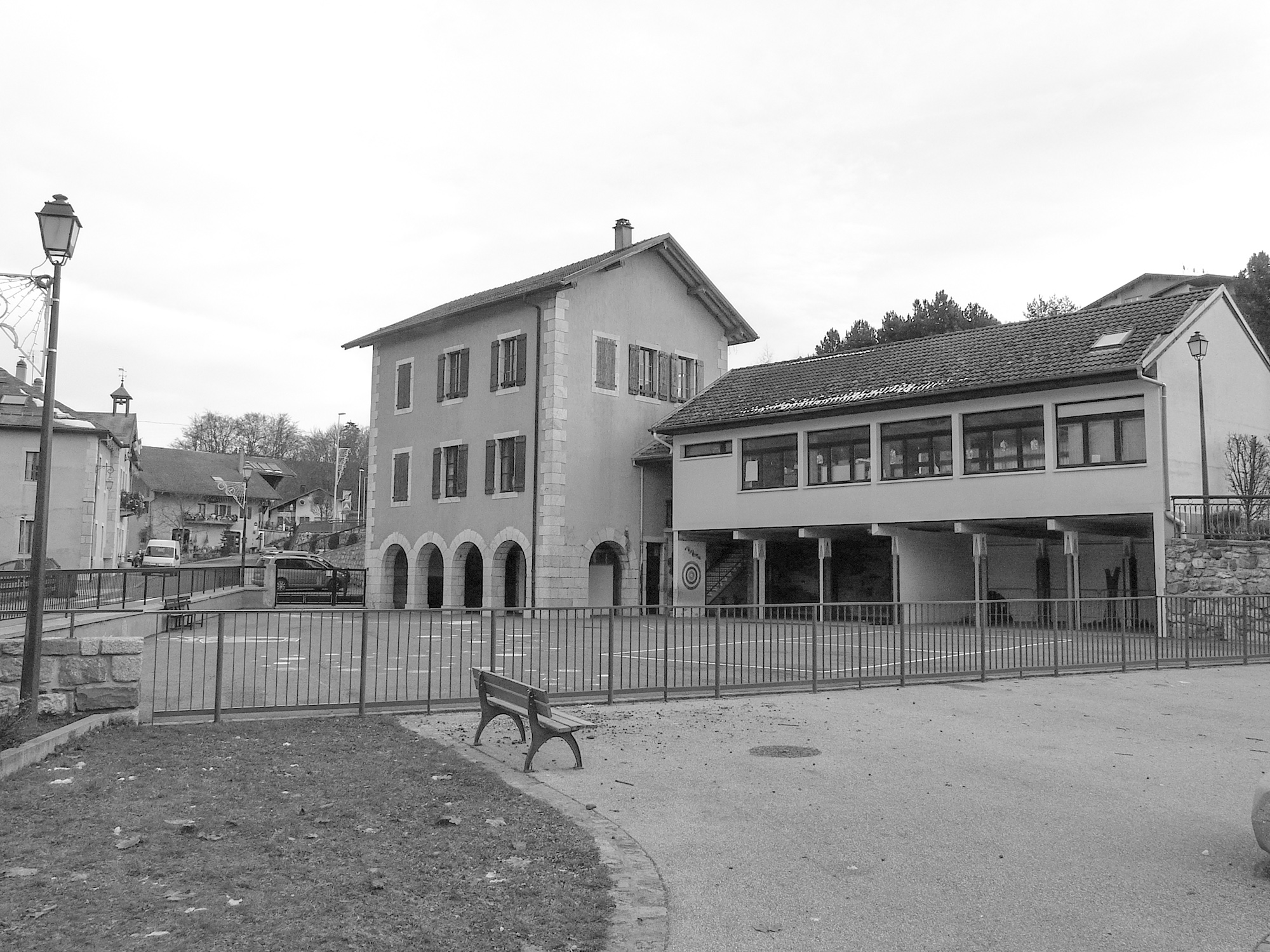 Démolition d’un vieux bâtiment pour créer le parvis de la mairie et ouvrir les vues sur la place du village.
