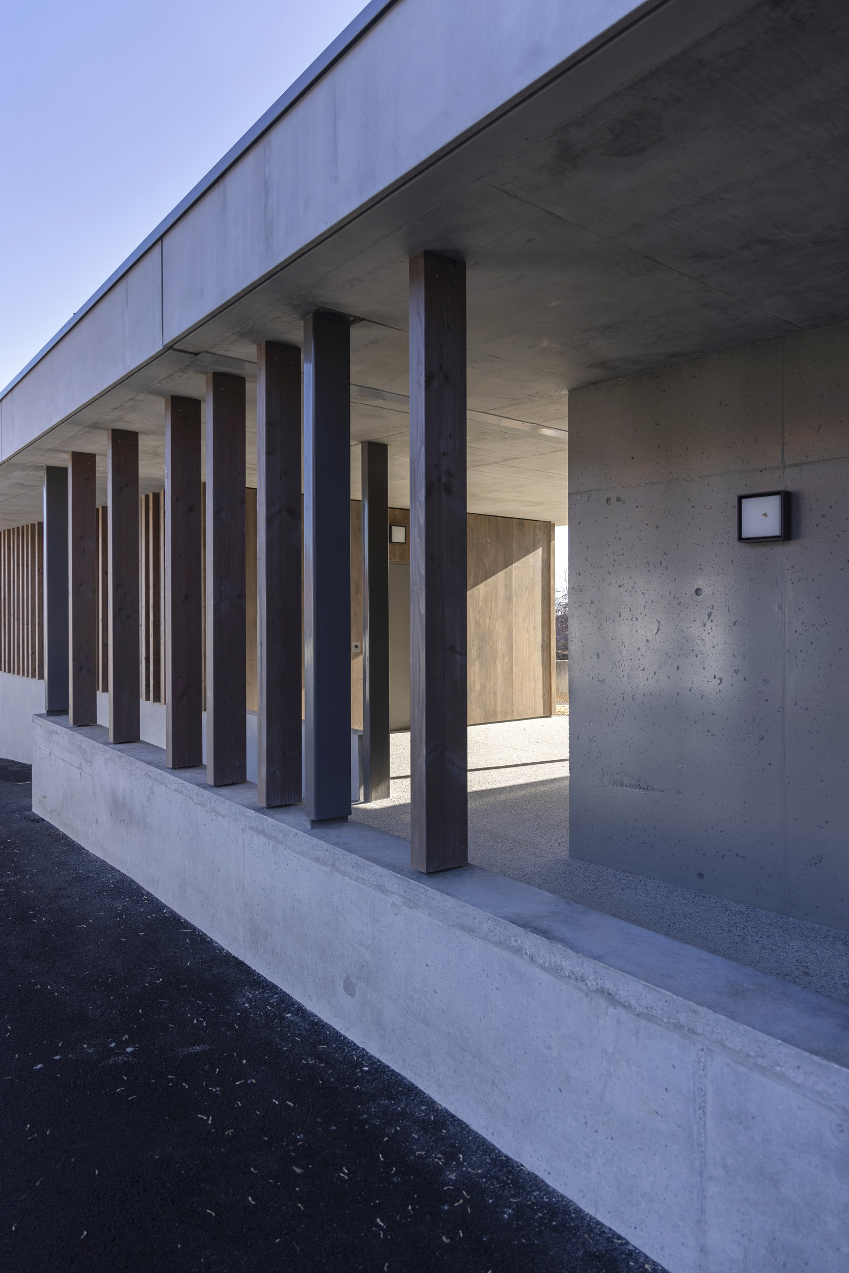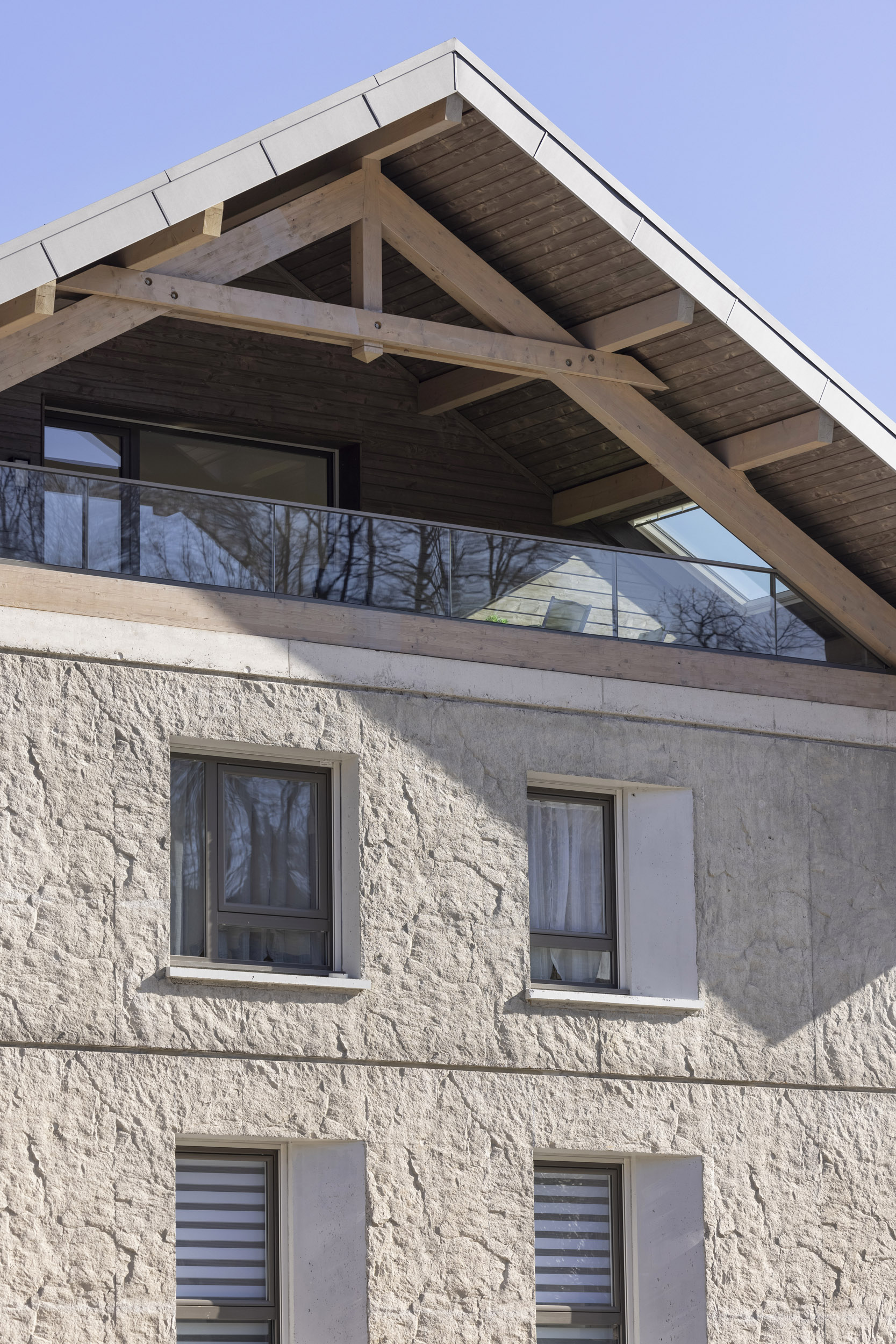 • Volumétrie simple et toiture lisse, en référence aux fermes typiques du village.